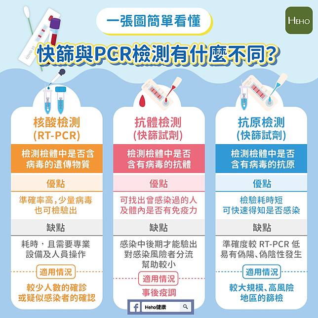 Pcr檢測(reverse transcriptase polymerase chain reaction,簡稱 rt-pcr) 全球作為診斷的標準檢測,能檢測出檢體中是否含有病毒的遺傳物質。 優點: 準確度 檢測. Now健康 更新於 05月28日08:29 • 發布於 05月28日05:56 • 王澍清 報導 【now健康 王澍清/台北報導】擔心被感染,許多人排隊等待做快篩,若出現陰性則雀躍不已,要是陽性可就笑不出來。